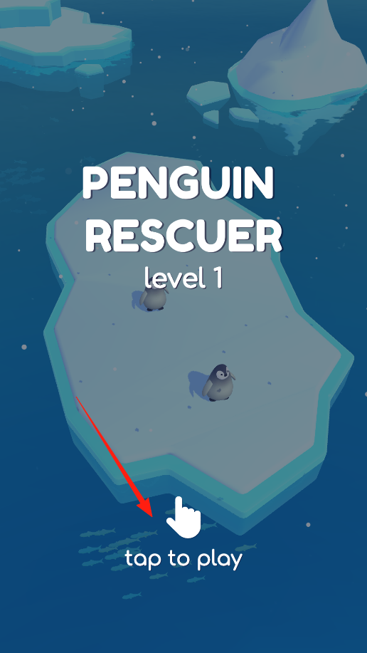 1、進(jìn)入Penguin Rescuer游戲第一關(guān),看到冰島上有兩只企鵝,點(diǎn)tap to play開始救援,得想辦法讓企鵝脫離危險(xiǎn),后續(xù)要通過切割冰塊等操作,保護(hù)它們。