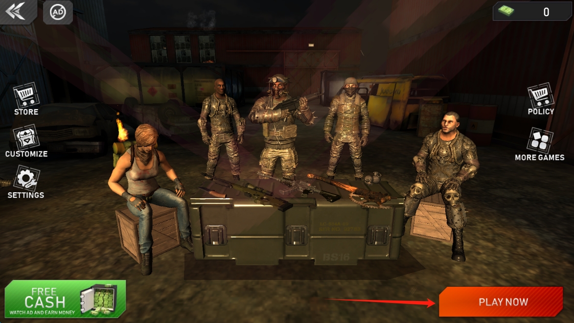 1、主界面,點擊PLAY-NOW,進入軍事射擊戰(zhàn)場,開啟戰(zhàn)斗任務,點擊按鈕開始游戲。