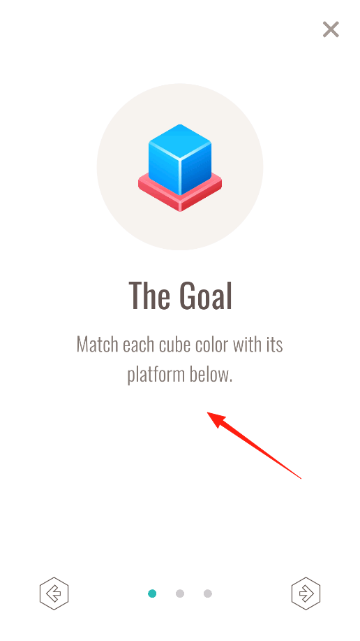 1、進入游戲,看到The Goal提示,目標是讓方塊顏色和下方平臺匹配,先記住每個方塊顏色,后面通過操作把藍色方塊對應(yīng)紅色平臺這類匹配做好,一步一步完成顏色配對任務(wù)。