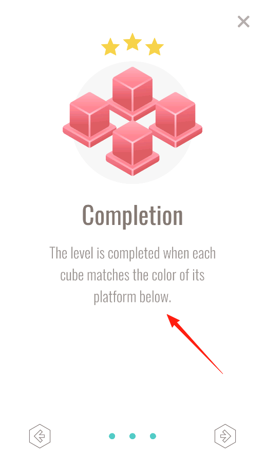 3、最后Completion階段,只要每個方塊顏色和下方平臺一致,關(guān)卡就完成,前面調(diào)整顏色后,檢查每個方塊,都配對好就通關(guān),能繼續(xù)下一關(guān),繼續(xù)挑戰(zhàn)更復(fù)雜的顏色配對。