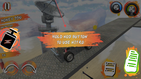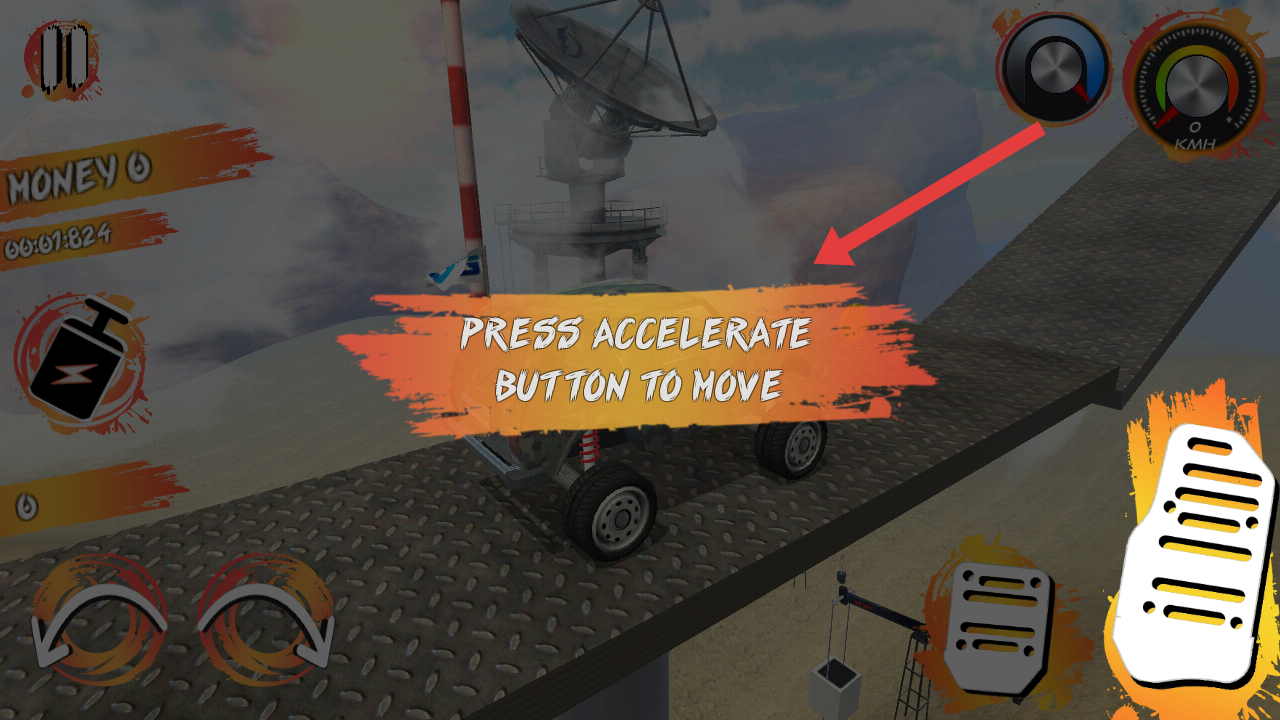 1、進入游戲后,按提示按下加速鍵啟動車輛,點擊右側(cè)加速按鈕,驅(qū)動越野車開始行駛。
