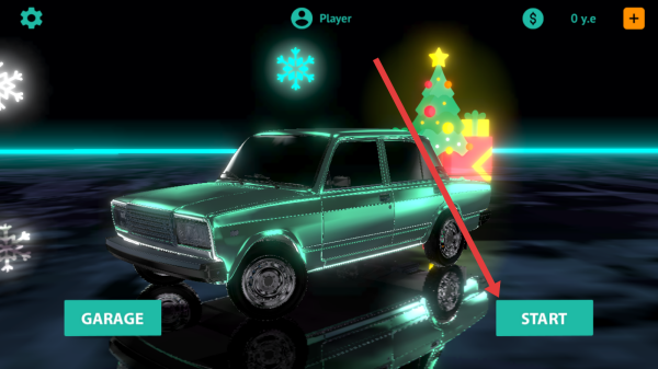 2、在車輛展示界面點(diǎn)擊右側(cè)START按鈕,進(jìn)入游戲駕駛場景,駕駛帶有圣誕裝飾的車輛,開啟雪地行駛挑戰(zhàn)之旅。