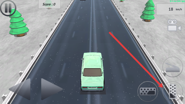 3、游戲內(nèi)點(diǎn)擊右側(cè)按鍵控制方式開車,借按鍵操作車輛方向與速度,在雪地公路躲避障礙、提升分?jǐn)?shù),適應(yīng)操控推進(jìn)游戲。
