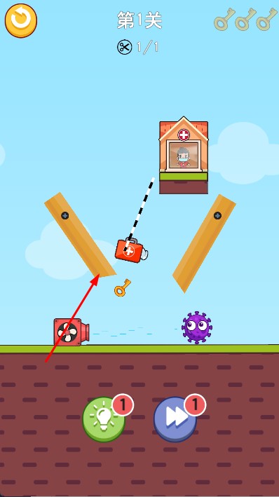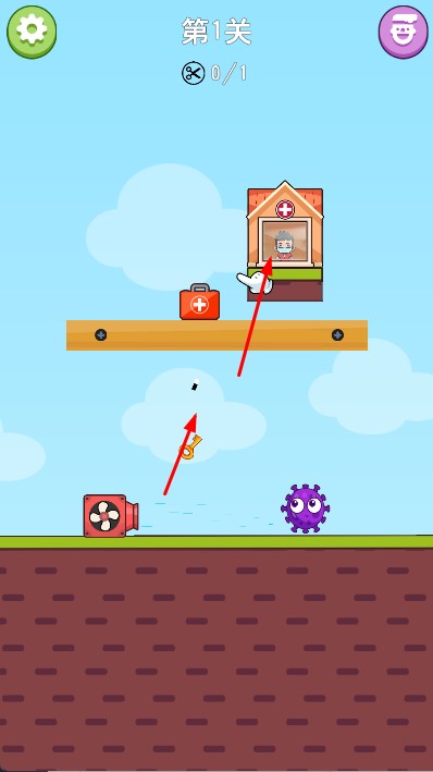 2、思考通關(guān)策略,同時(shí)要避開(kāi)像病毒這樣的危險(xiǎn)元素,成功拿到醫(yī)療箱救助小寶寶。