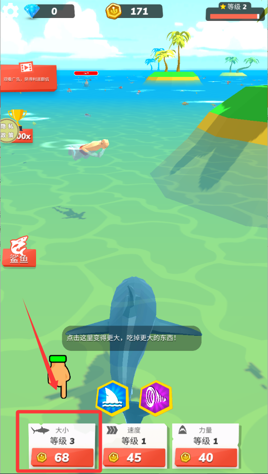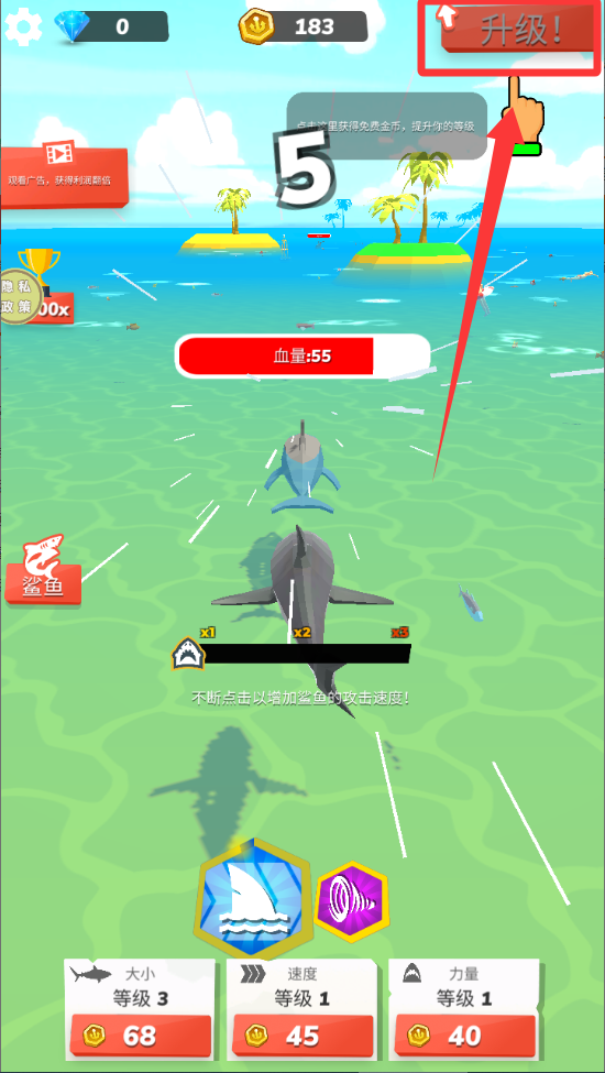 4、離線成長機制,即使退出游戲鯊魚也會自動捕食,化身兇猛鯊魚展開你的掠食之旅隨時回歸都能收獲資源,適合碎片化時間游玩。