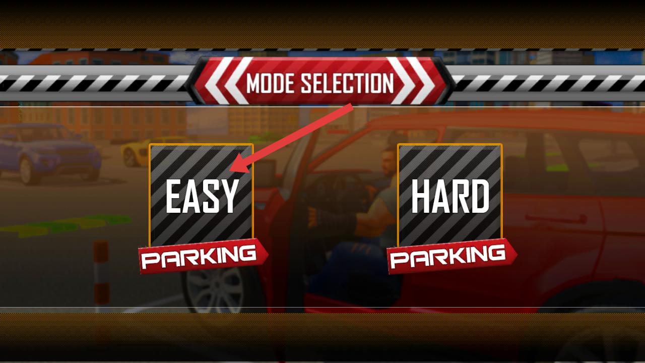 1、進(jìn)入游戲界面后,點(diǎn)擊左側(cè)標(biāo)有EASY PARKING的選項(xiàng),選擇簡(jiǎn)單難度開啟停車挑戰(zhàn),該關(guān)卡非常適合新手熟悉操作。