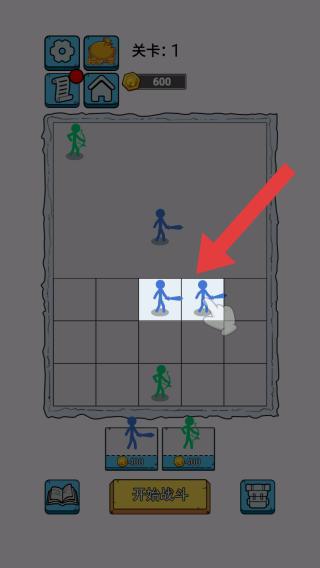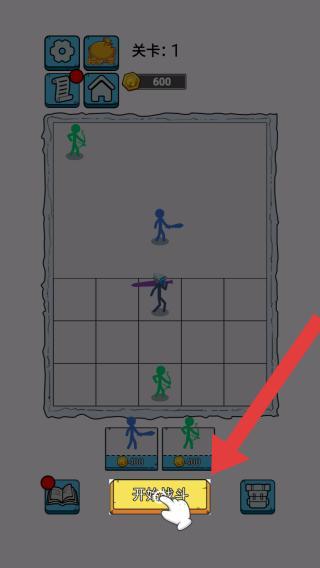 1、在布陣頁(yè)面點(diǎn)擊開(kāi)始戰(zhàn)斗按鈕即可讓火柴人部隊(duì)進(jìn)入戰(zhàn)場(chǎng),合理安排兵種站位,發(fā)揮最佳進(jìn)攻和防御組合優(yōu)勢(shì)。
