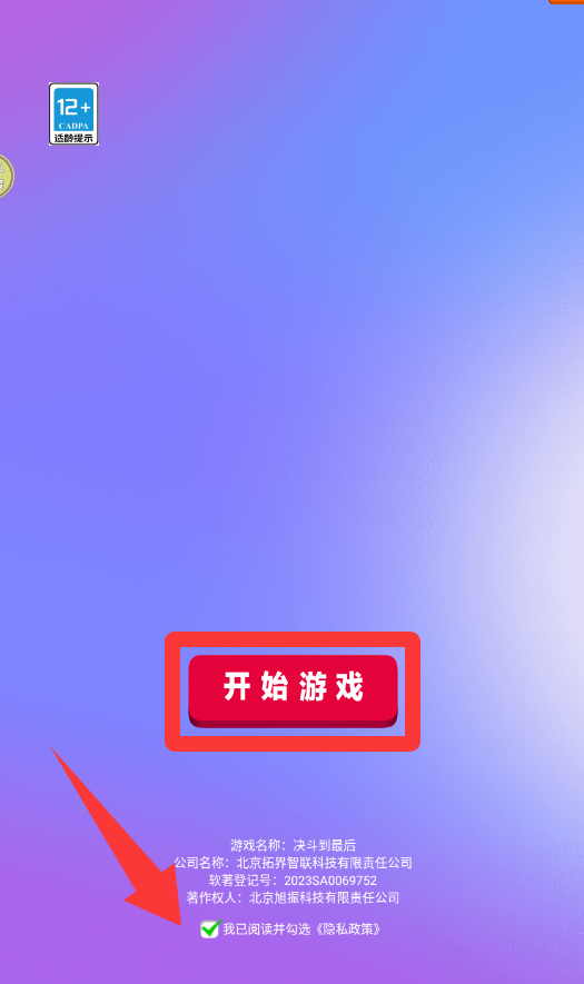1、點擊紅色箭頭里打√再點擊開始游戲。
