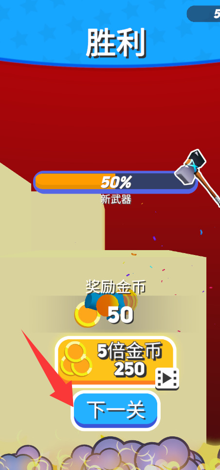 4、恭喜你過關了,點擊紅色箭頭哪里下一關。