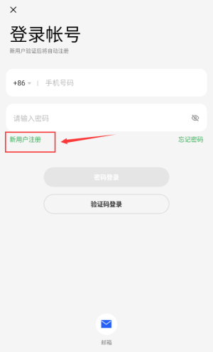 1、點(diǎn)擊紅框新用戶注冊按鈕,進(jìn)入手機(jī)號注冊流程。