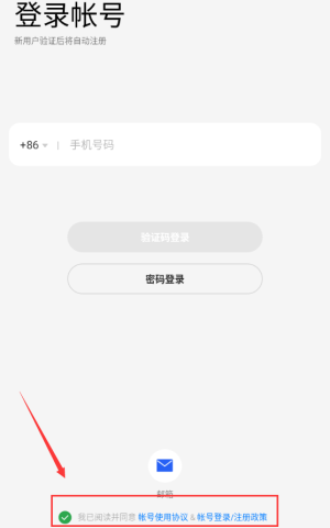 3、勾選紅框協(xié)議選項(xiàng),同意條款后繼續(xù)登錄操作。
