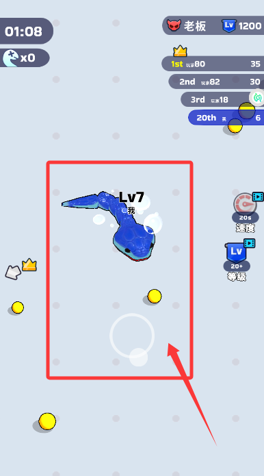 2、沿途吞食能量豆快速成長,實時榜單則會顯示當前對戰(zhàn)的排名。