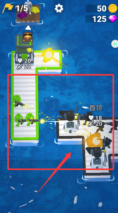 1、點(diǎn)擊開(kāi)始游戲,即可進(jìn)入海域中不斷的收集材料,擊退進(jìn)犯之?dāng)车拿半U(xiǎn)。