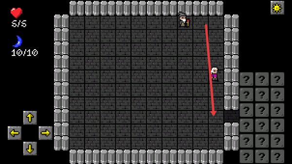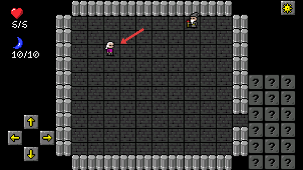 1、用方向鍵控制角色移動,按箭頭指引避開敵人黑衣,優(yōu)先探索右側的問號區(qū)域,獲取道具或者線索。