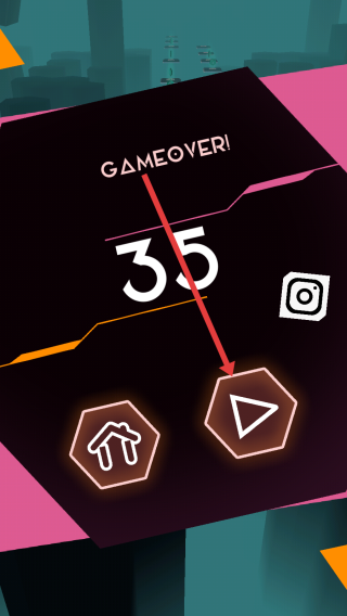 3、游戲結(jié)束后,點擊右側(cè)三角形按鈕重新開始,突破35分記錄,穿梭中優(yōu)化操作,爭取更高分數(shù),延續(xù)無盡旅行的樂趣。