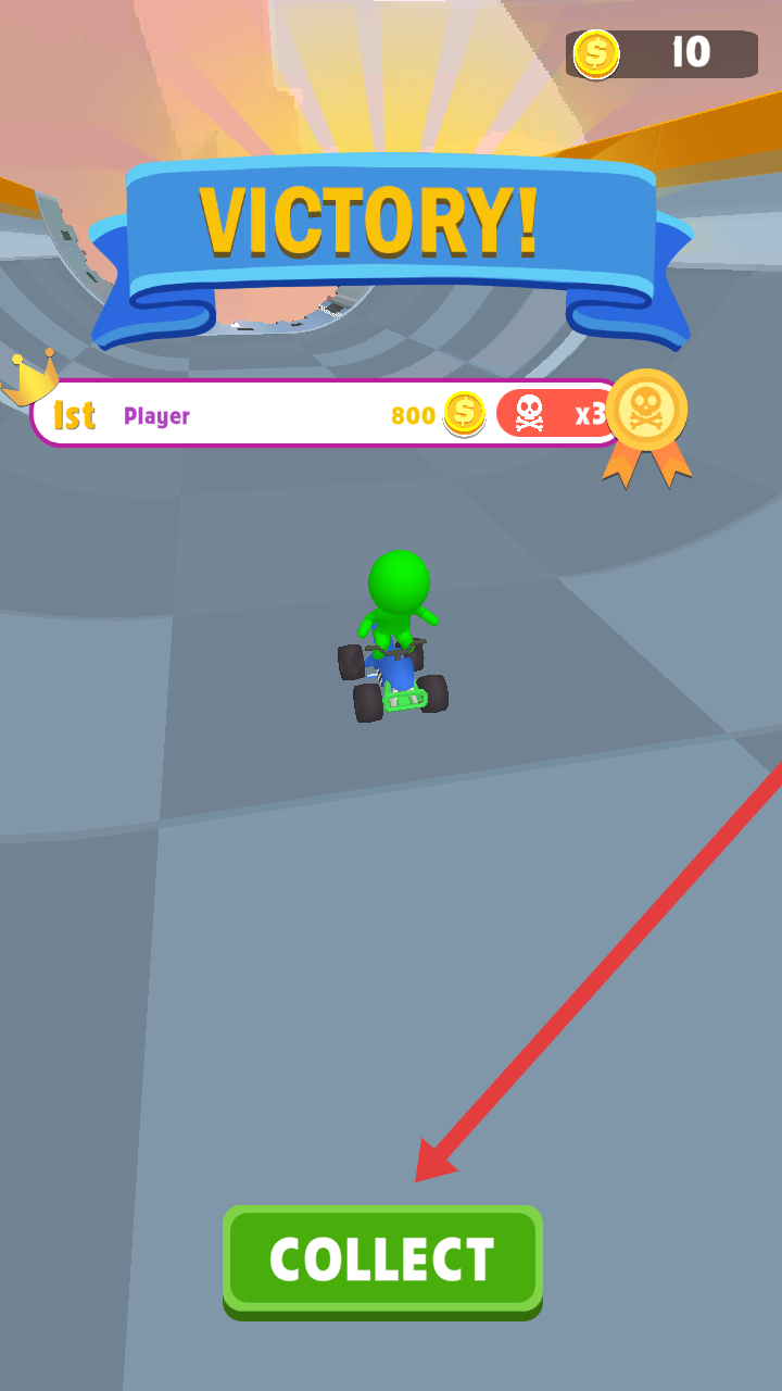 3、沖線獲得勝利后,點擊綠色COLLECT的按鈕,領(lǐng)取800金幣及獎勵,解鎖后續(xù)的關(guān)卡與內(nèi)容。