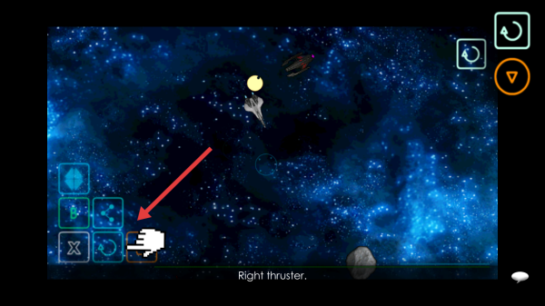 3、任務中,點擊左側(cè)Right thruster右推進器等操作按鈕,控飛船躲避障礙、調(diào)整航線,完成關(guān)卡目標。