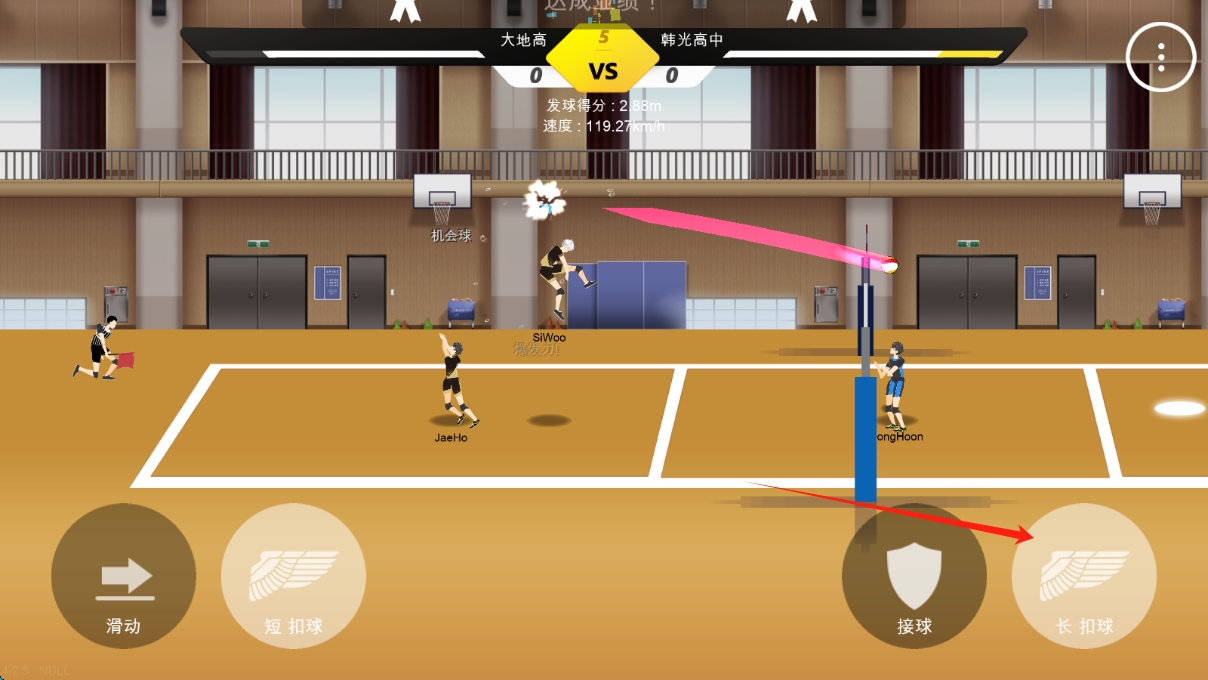 3、靈活滑動(dòng)方向鍵,調(diào)整球員位置,配合隊(duì)友,爭(zhēng)取比賽勝利,點(diǎn)擊按鈕進(jìn)行比賽扣球。