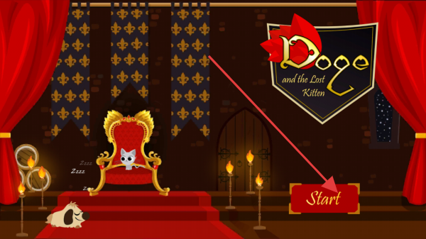 1、打開Doge and the Lost Kitten,點(diǎn)擊Start開始游戲,進(jìn)入城堡王座室,開啟拯救小貓冒險(xiǎn)。