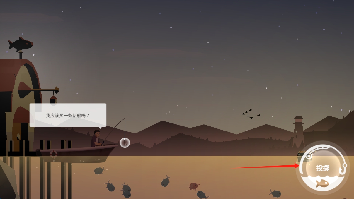 2、在釣魚場景中,點擊右下角投擲按鈕,將釣餌投入水中,開啟釣魚流程,點擊按鈕投擲。