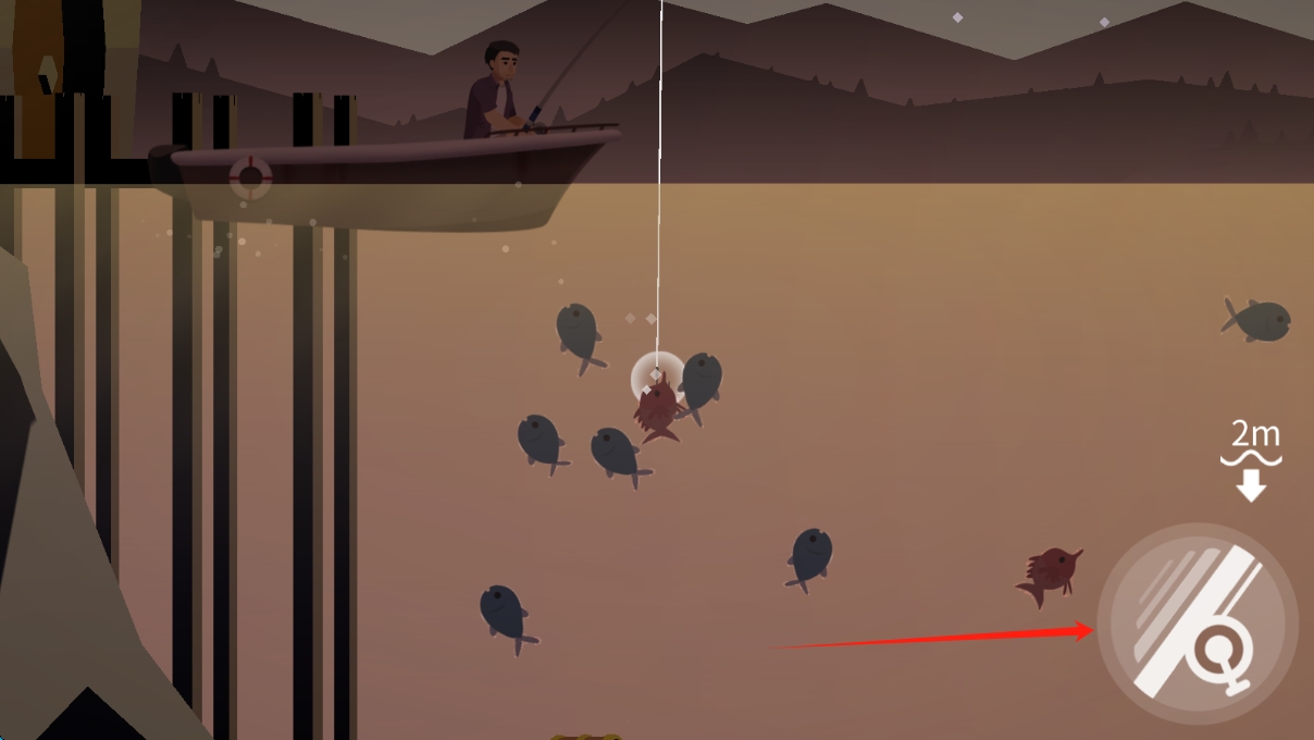3、當魚咬鉤后,點擊右下角對應交互按鈕,進行收線等操作,嘗試釣起魚獲,點擊按鈕收桿子。