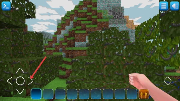 1、用虛擬搖桿進(jìn)行移動(dòng),探索草地、山坡場景,靠近樹木、礦石如草地下資源,點(diǎn)擊圖標(biāo)采集。