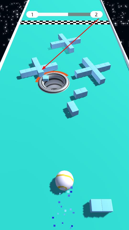 1、操控帶軌跡的小球滾動前行,撞擊路徑上的藍色方塊,使其向孔洞方向移動,逐步推動方塊落入黑洞,開啟空間清理進程。