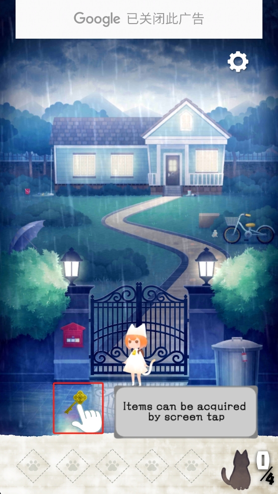 1、按提示點(diǎn)擊畫(huà)面左下角帶手指標(biāo)識(shí)的金色鑰匙,獲取該道具,后續(xù)可用于解鎖場(chǎng)景中的機(jī)關(guān)。