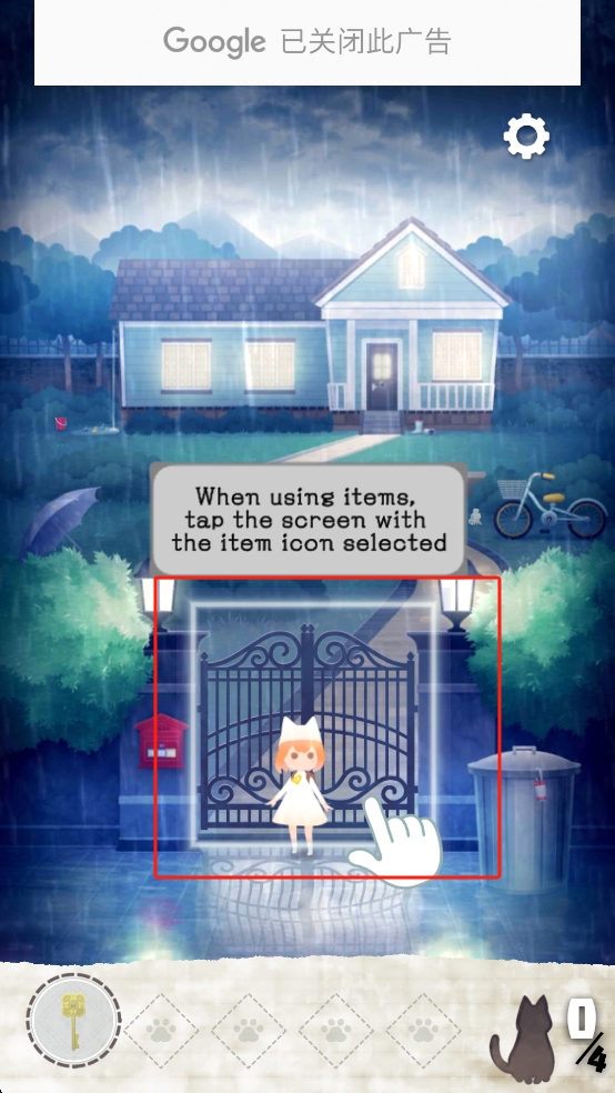 2、選中已獲取的鑰匙道具,點(diǎn)擊畫(huà)面中人物身前的鐵門區(qū)域,嘗試用鑰匙開(kāi)啟鐵門,推進(jìn)進(jìn)入房屋區(qū)域的進(jìn)度。