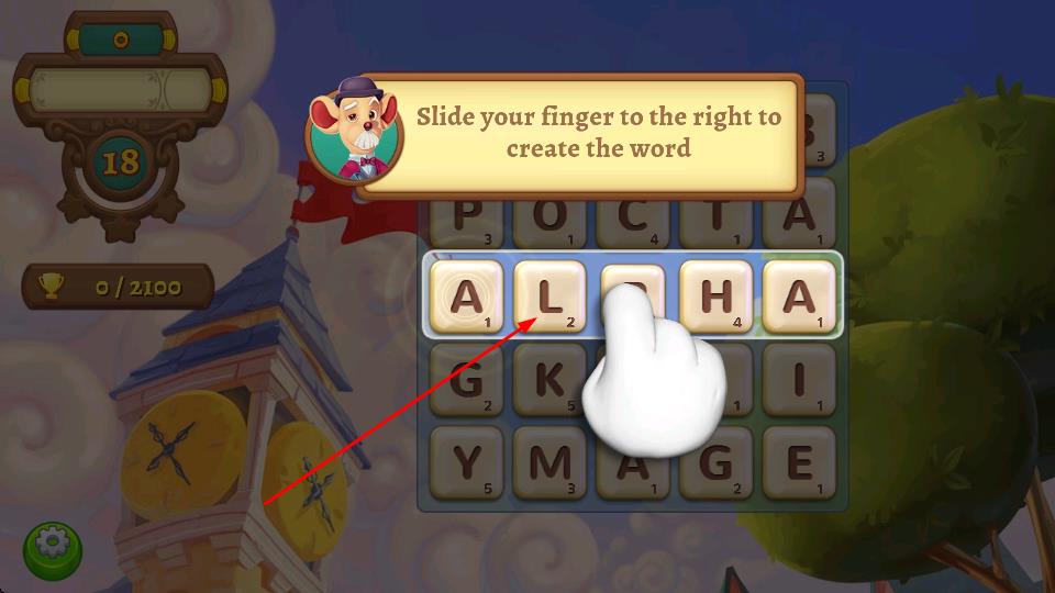 1、進(jìn)入游戲關(guān)卡依據(jù)提示滑動(dòng)手指連接字母,按序拼接成有效單詞,完成基礎(chǔ)操作開啟游戲進(jìn)程。
