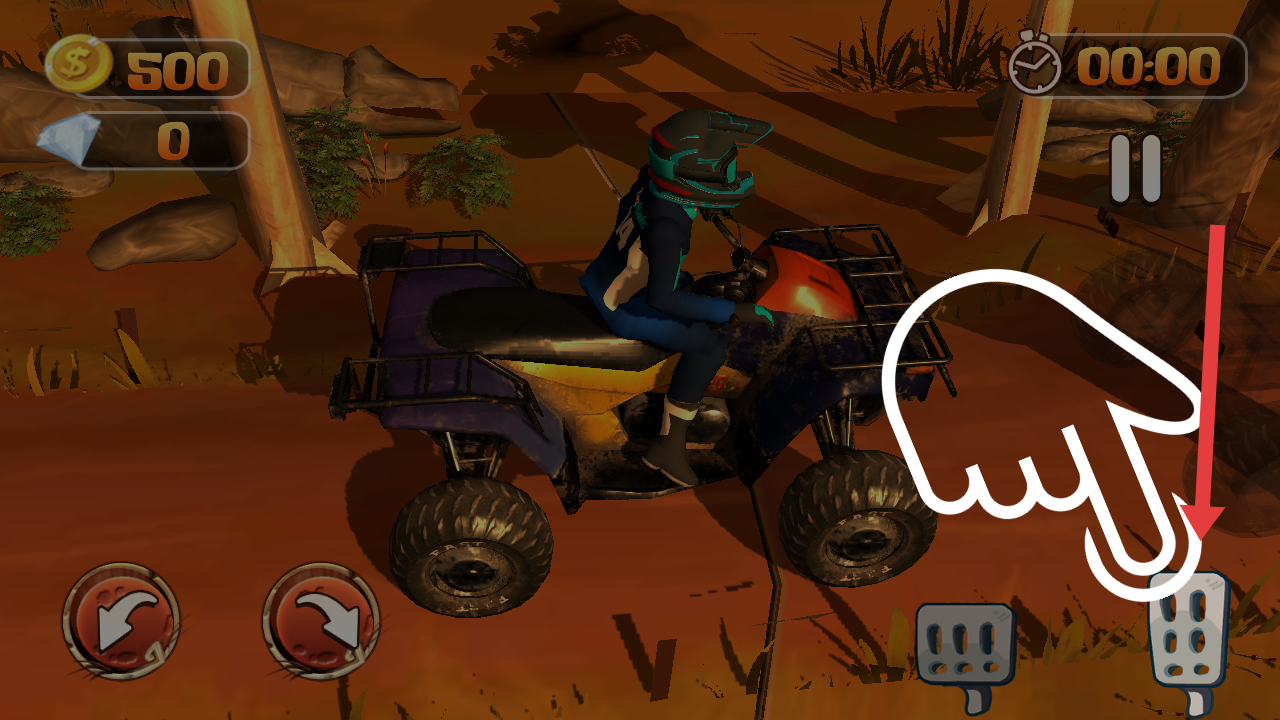 1、進入比賽場景后,需要點擊右下角踏板的圖標(biāo),踩下油門啟動ATV,正式開啟越野挑戰(zhàn),超越其他對手。