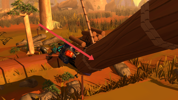 3、在行駛時需要留意前方障礙如突然襲來的大木樁陷阱,需要調(diào)整方向或車速,避免被砸中碰撞翻車。