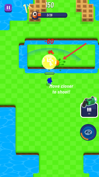 1、戰(zhàn)斗環(huán)節(jié),留意屏幕的提示Move closer to shoot,靠近了敵人后再射擊,借助了場(chǎng)景中的地形。