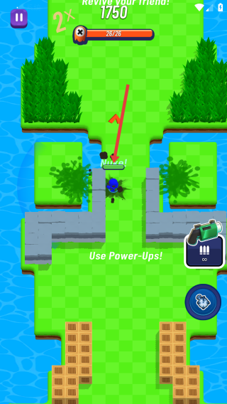 2、遇到隊(duì)友倒地,依據(jù)Use Power - Ups的提示,合理運(yùn)用技能道具,沿箭頭方向靠近倒地隊(duì)友。