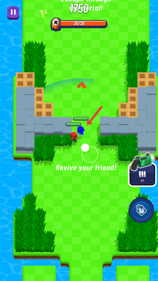 3、當(dāng)出現(xiàn)Revive your friend提示,繼續(xù)的跟隨紅色箭頭指引,穿過場(chǎng)景中的掩護(hù)如石塊、草叢等。