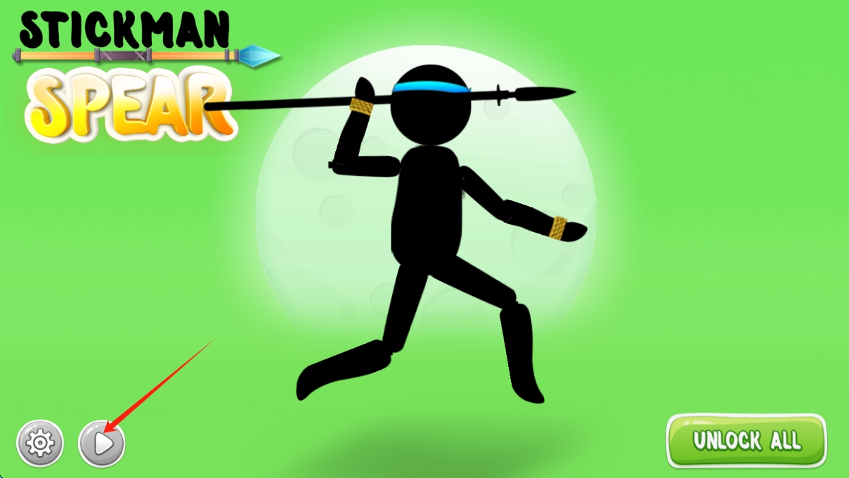 1、在游戲啟動界面點擊左側(cè)播放按鈕,進入Stickman Spear游戲,點擊按鈕開始游戲。