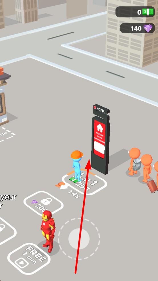 2、積累資金后,點(diǎn)擊建造酒店廣告牌,吸引客源,會(huì)有更多的客人慕名而來(lái),解鎖游客入住的基礎(chǔ)收益。