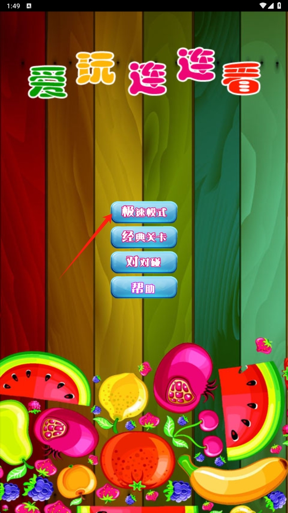 1、在游戲主界面點(diǎn)擊極速模式,進(jìn)入水果連連看的快速挑戰(zhàn)玩法,點(diǎn)擊開始游戲內(nèi)容。