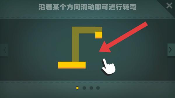 1、畫面呈現(xiàn)了新手指引的教程,根據(jù)文字提示:沿著某個方向滑動即可進(jìn)行轉(zhuǎn)彎,進(jìn)行相對應(yīng)的操作。