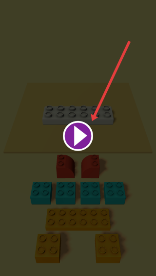 1、點(diǎn)擊紫色播放按鈕,進(jìn)入Level-1搭建關(guān)卡,利用下方紅、藍(lán)、棕等顏色積木,準(zhǔn)備按指引搭建指定造型。