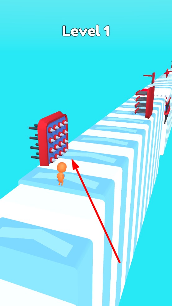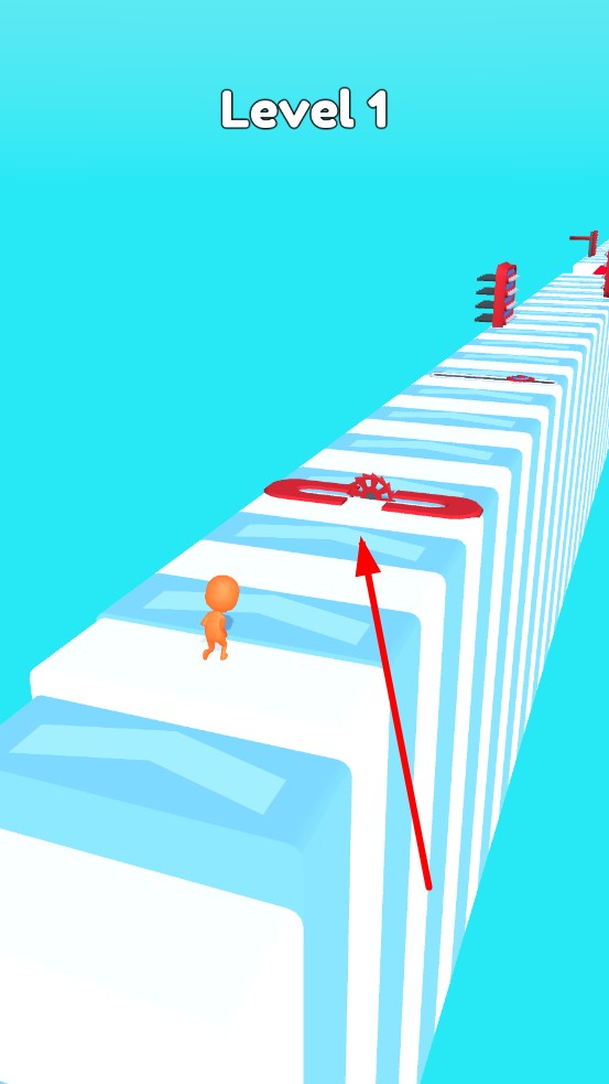 1、開局通過滑動屏幕,控制道路上的機關左右移動,小人會持續(xù)不變方向的地往前跑,需要由機關躲避小人。