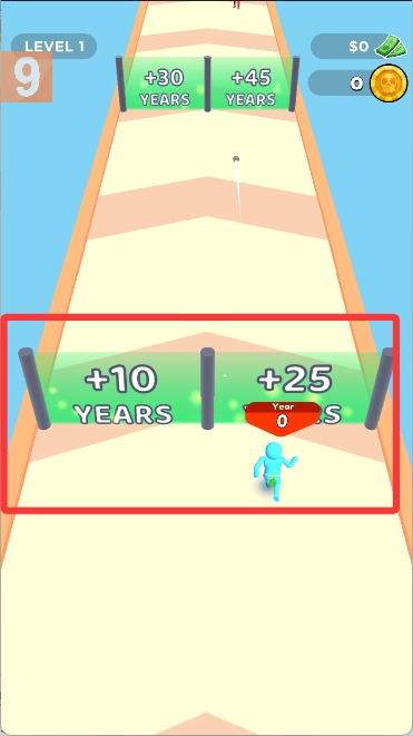 2、賽道上會出現(xiàn)多種選擇,需計算并判斷哪條路更有利于擴大人群規(guī)?;颢@取武器,提升整體戰(zhàn)斗力。