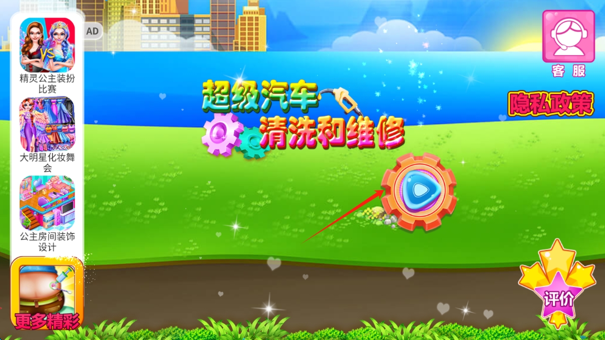 1、點擊主界面齒輪狀開始按鈕,進入超級汽車清洗和維修游戲,開啟車輛養(yǎng)護任務(wù)。