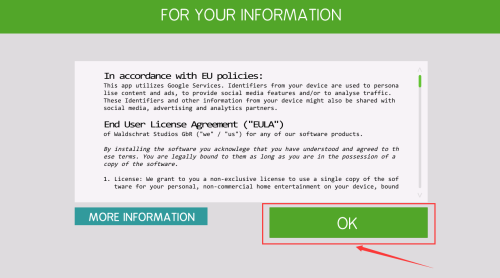 2、點擊紅框OK按鈕,確認同意用戶許可協(xié)議條款。