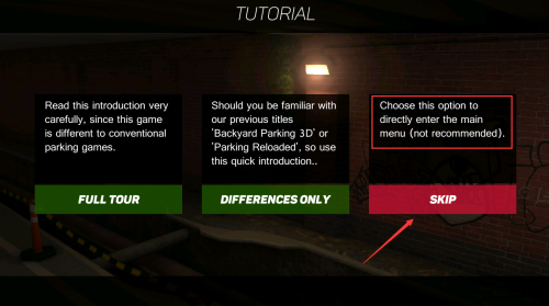 4、點擊紅框SKIP按鈕,跳過教程直接進入主菜單。