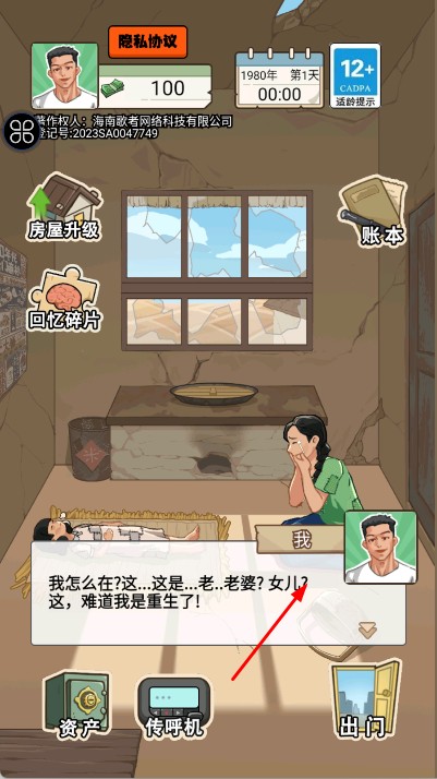 1、進(jìn)入游戲,開(kāi)局在屋內(nèi)觸發(fā)重生劇情,與家人對(duì)話(huà)推進(jìn)故事。