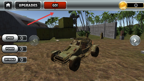 2、于車輛準(zhǔn)備頁(yè),點(diǎn)擊上方紅色GO按鈕,駕駛越野車正式開啟該關(guān)卡的地形挑戰(zhàn)。