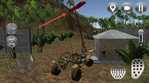 3、操控越野車行駛,沿路線翻越地形,朝著高處紅色標(biāo)識(shí)物進(jìn)發(fā),靈活用操作鍵過(guò)障礙。