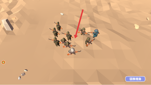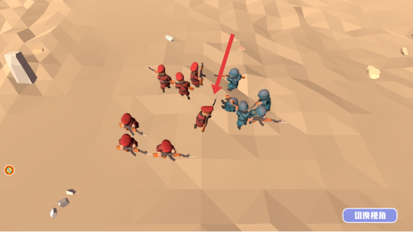 2、戰(zhàn)斗時,操控不同陣營士兵綠、藍等,利用地形沙漠場景,點擊切換視角觀察戰(zhàn)場,指揮作戰(zhàn)。
