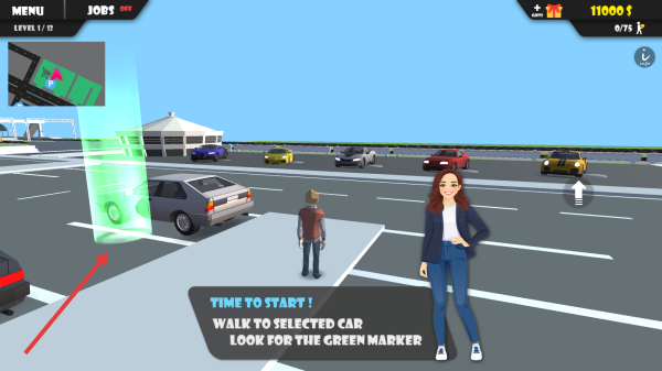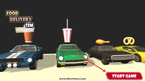 1、在Food Delivery Sim主界面選車(chē)輛,點(diǎn)擊START GAME,進(jìn)入停車(chē)場(chǎng)場(chǎng)景開(kāi)啟送餐任務(wù)。